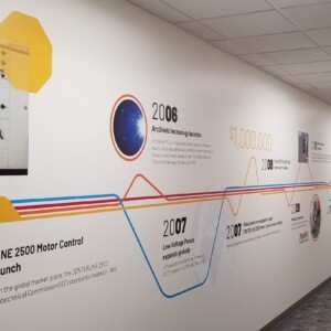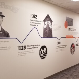 Employees at Rockwell Automation can now take a walk down memory lane – literally. With a 94 foot hallway of CNC Vinyl on one side, taking them through a timeline of what started as Allen-Bradley to what we know today as Rockwell Automation.