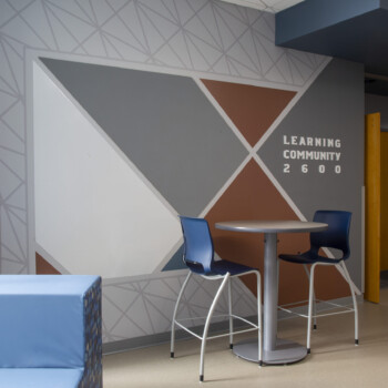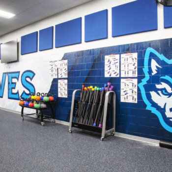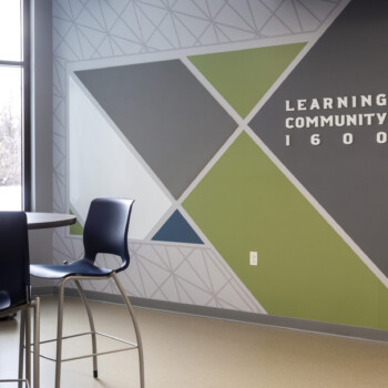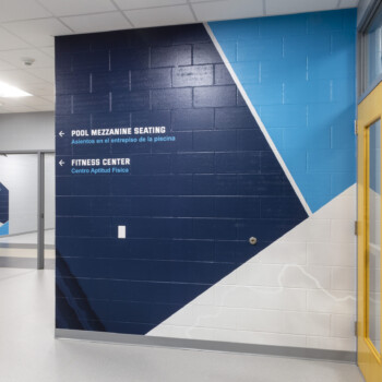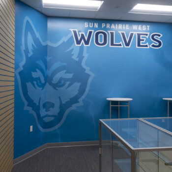 Sun Prairie West serves 1,300 students. The school opened in 2022 and is one of the most state-of-the-art high schools in Wisconsin! And now, with new graphics, the Wolves’ spirit just radiates throughout the school. Vinyl graphics, printed vinyl with digital print, acrylic lettering, glass markerboards, and more, Amplify Graphics & Branding fabricated, printed, and installed over 100 graphic design pieces throughout the high school.