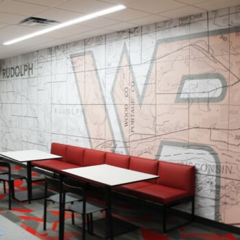 The great and talented Russ, our lead designer, collaborated with all the stake holders to completely blow these designs out of the water. We worked with the great team at Plunkett Raysich Architects, LLP and the leadership team at Wisconsin Rapids Lincoln High School to design environments for their renovations last summer. Great design invokes feeling and tells stories; the maps in the background of the workspace walls are from 1933, the year the school was built. Many students and faculty can’t find the streets they live on as they didn’t yet exist!
